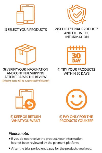 Try Now, Pay Later program is supported by third-party service platforms such as Affirm, Klarna, and Afterpay. This program offers convenient installment payment options, allowing you to pay in 3 installments over 3 months after the trial period ends.